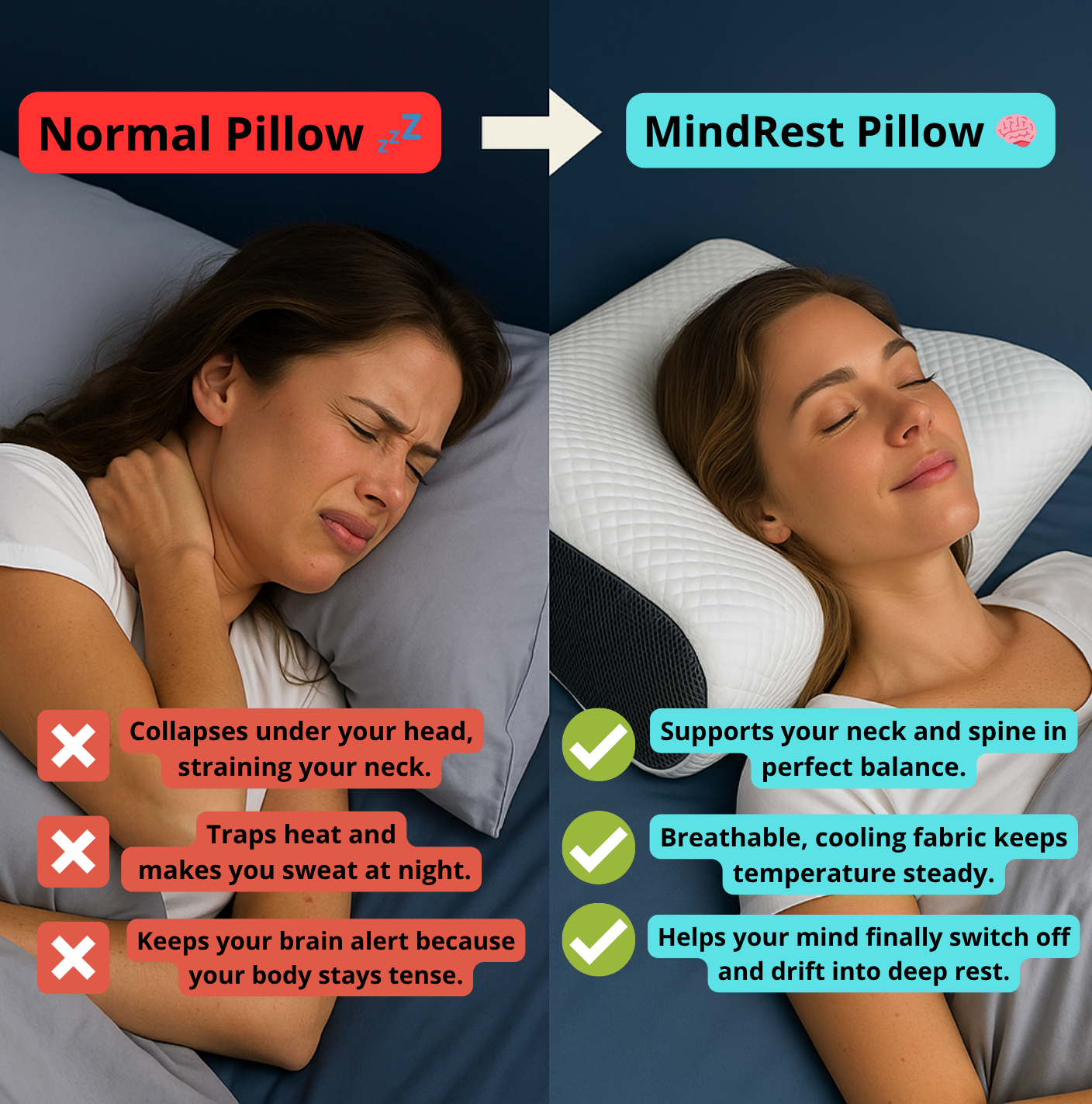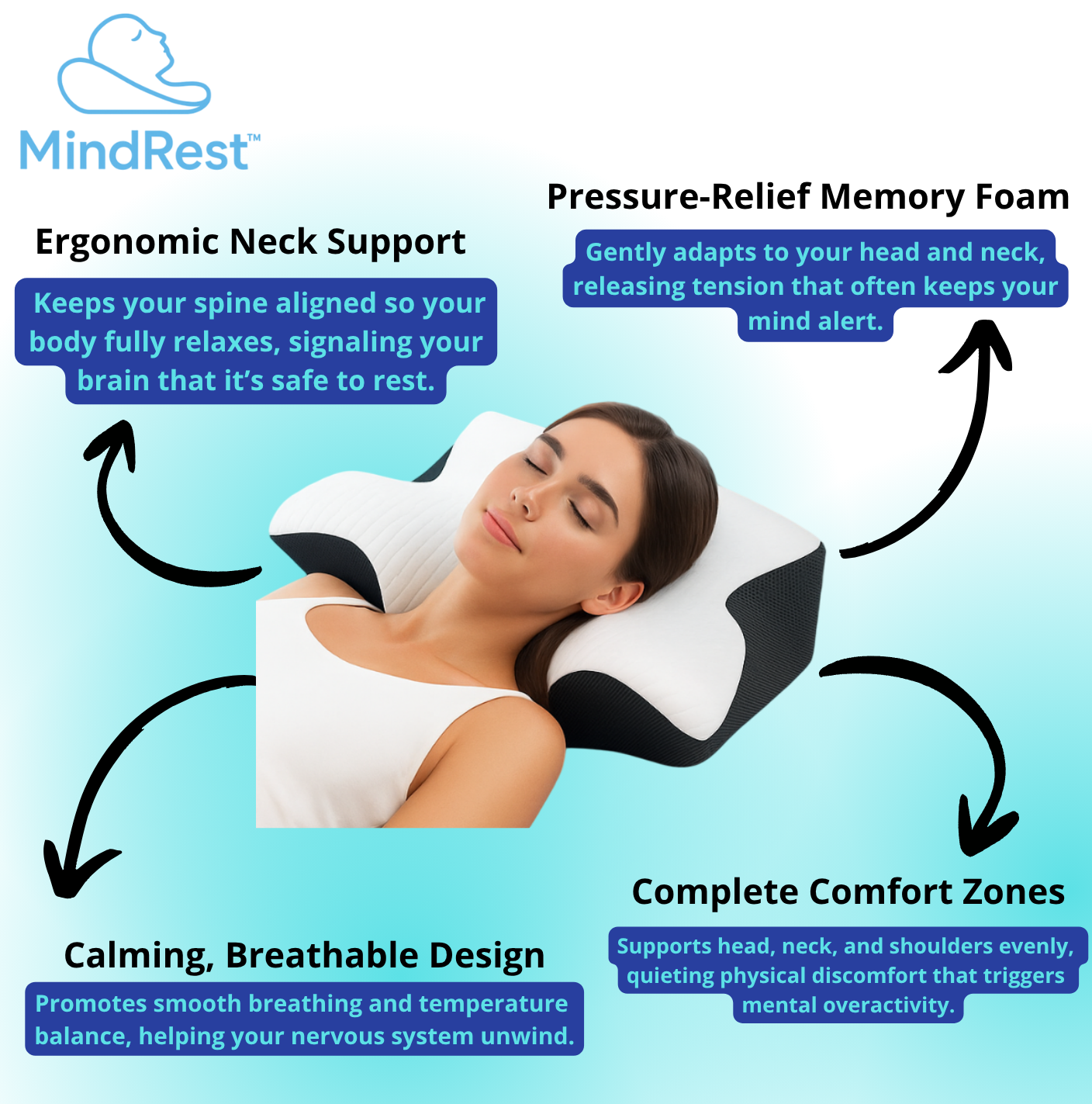 MindRest™ isn’t just about softness — it’s engineered to calm your nervous system. The ergonomic design keeps your neck aligned, which tells your brain it’s safe to relax and fall asleep deeply.